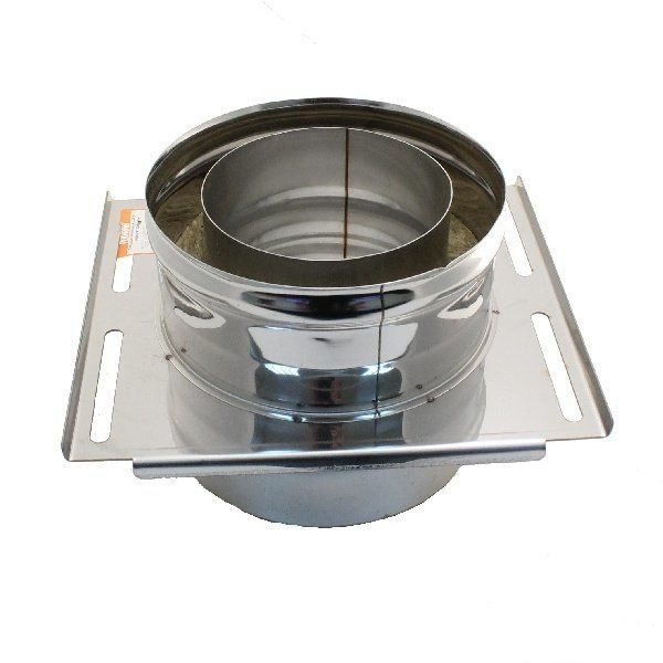 Площадка монтажная для нержавеющих сэндвич дымоходов. Высота площадки 300 мм. Изготовлена сама площадка из оцинкованной стали толщиной 1,5 мм. Внутренняя гильза изготовлена из нержавейки AISI 304 0,5 мм. Наружная гильза из нержавейки AISI 430 0,5. Тип соединения одна в одну.